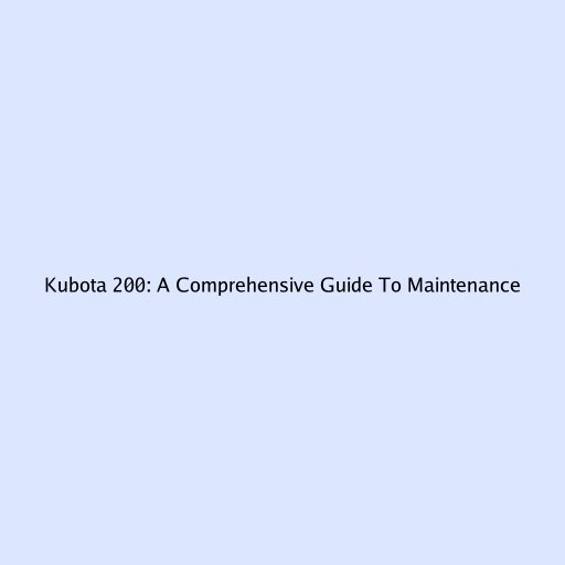 Kubota 200: A Comprehensive Guide to Maintenance